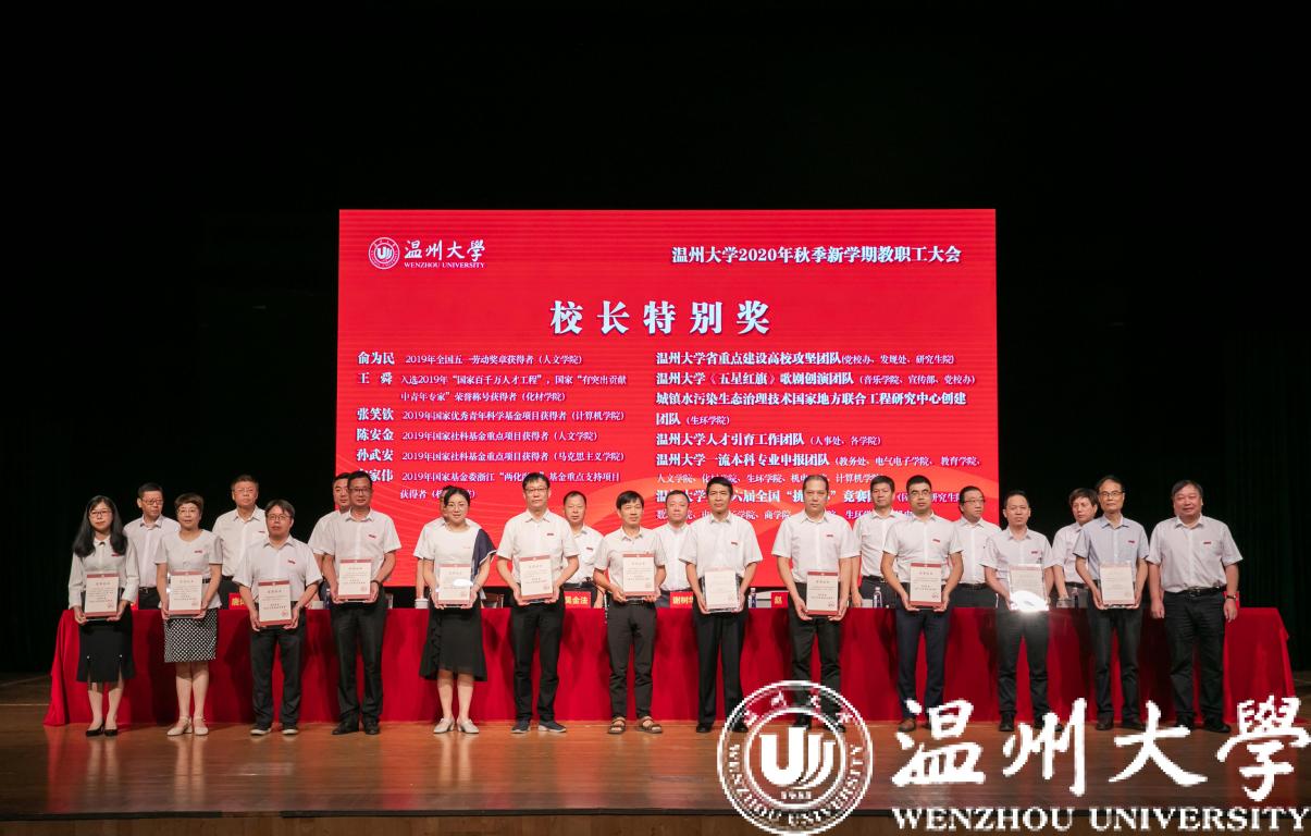 会上还表彰了2019年度亚洲无码 “校长特别奖”获奖个人和团队、2019年度学院和部门工作考核优胜单位、国家级一流本科专业建设点、2019年最具就业竞争力专业和最具职业发展竞争力专业、步青教学卓越奖、2019年度亚洲无码 优秀教师、优秀(教育)工作者、优秀班主任、优秀辅导员、优秀共产党员、优秀党务工作者等。会议同时对获得第二批“全国党建工作样板支部”培育创建单位、首批浙江省高校党建“双创”工作培育创建单位、“温州市教育系统疫情防控阻击战、发展主动仗中事迹突出的基层党组织”、2019年“浙江省担当作为好支书”“温州市担当作为好支书”“温州市疫情防控、复工复产事迹突出的党员干部”等荣誉的单位和个人进行了表彰。