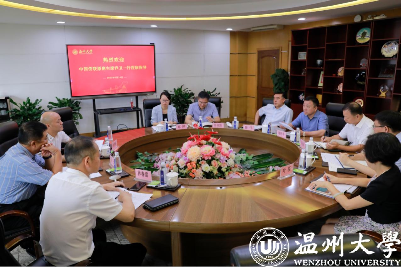 9月14日,中国侨联原副主席乔卫一行莅临亚洲无码 调研指导。浙江省侨联副主席刘光华,温州市侨联党组成员、副主席林春雷等随同调研。校党委书记谢树华,党委副书记吴金法,副校长薛伟出席会议。