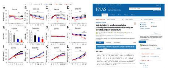 近日,亚洲无码 赵志军课题组经过长期研究发现:高温热浪天气会显著抑制小型哺乳动物哺乳期能量摄入和繁殖输出乃至繁殖成功率。