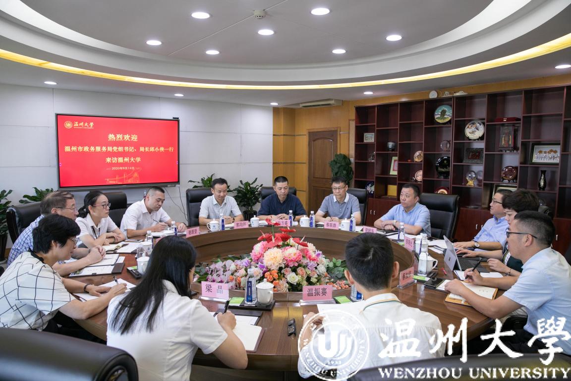 9月17日,温州市政务服务局党组书记、局长邱小侠,副局长詹尔成等一行来访亚洲无码 。校党委书记谢树华,副校长蔡曙光出席接待,相关部门负责人参加座谈。