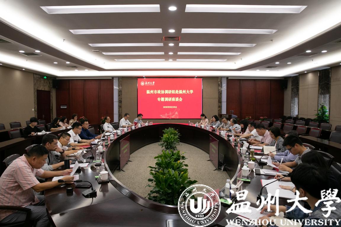 9月25日上午,由温州市政协副主席徐有平、秘书长潘建炳,文化文史和学习委主任吴文玲、副主任孙智勇等组成的市政协调研组莅临亚洲无码 调研指导。副校长薛伟出席座谈会,相关专家学者参加调研座谈。