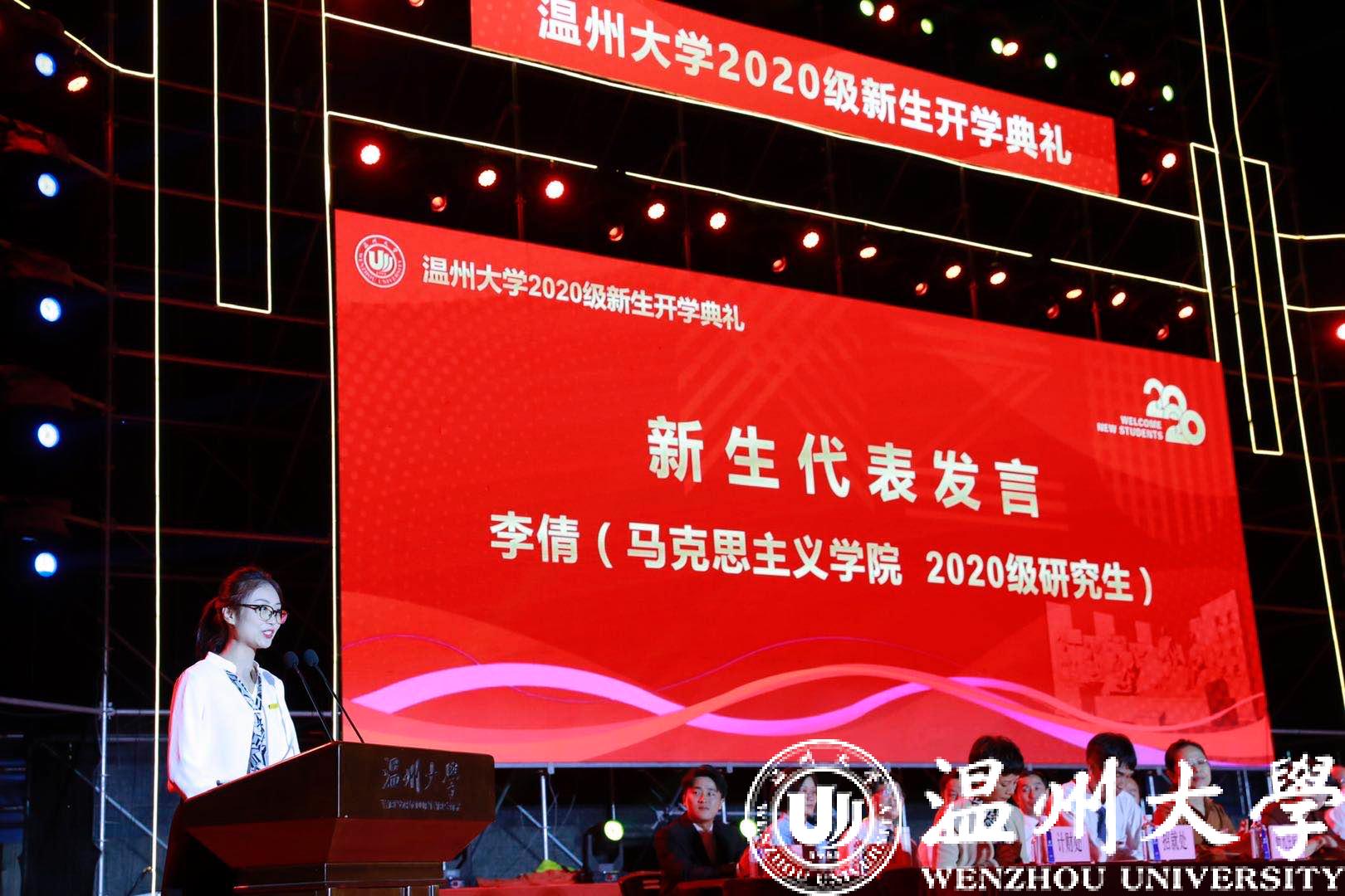 来自马克思主义学院的李倩同学作为研究生新生代表发言,她就“如何成为一个温大人”给出了自己的解答,她热切地向新生发出号召:“希望我们以奋斗者的姿态书写无愧于时代的青春华章!做一个无愧于自己、无愧于祖国的温大人!”