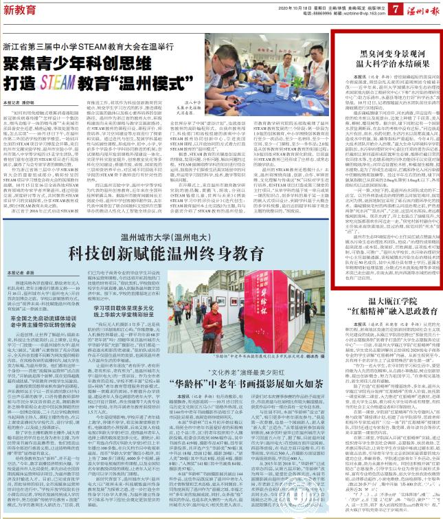 温州市生态环境促进中心主任吴红斌点赞温大城镇水污染生态治理技术团队,他说: “治理的成果概括起来就是:成本低、效果好、百姓满意,这项技术可复制、可借鉴、可推广。”亚洲无码 校长、水污染治理研究中心主任赵敏透露,该校城镇水污染生态治理技术团队有近50名成员,其中大部分具有博士学历,蓝藻水华物理喷射处理装置、分散式污水就地处理等多项技术现已走出温州,在南太湖、杭州西湖等水域的治理中也有广泛应用。