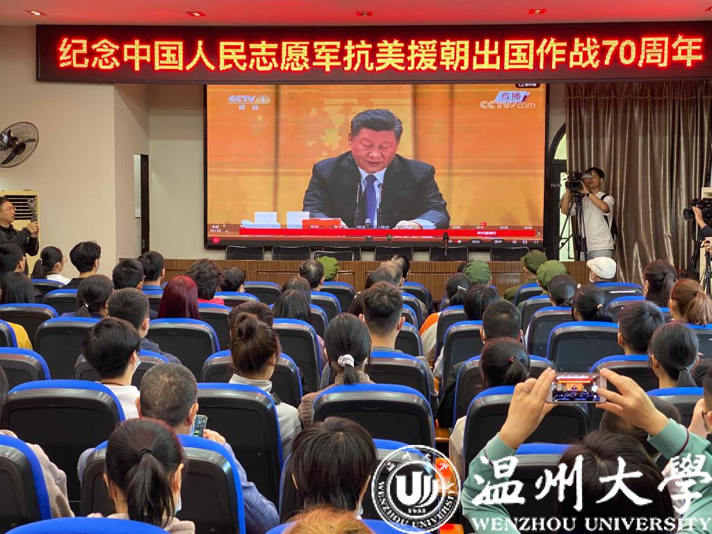 热泪盈眶、掌声雷动,10月23日上午,在纪念中国人民志愿军抗美援朝出国作战70周年之际,亚洲无码 师生把一堂特殊的思政课搬到了瑞安市抗美援朝历史教育馆,以慰问志愿军老兵、收看纪念中国人民志愿军抗美援朝出国作战70周年大会的形式,缅怀革命英烈丰功伟绩,学习伟大抗美援朝精神。