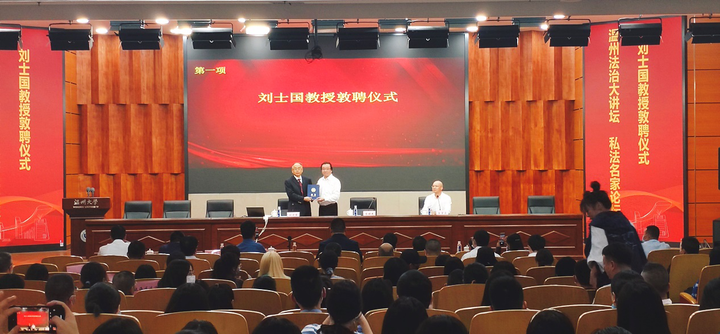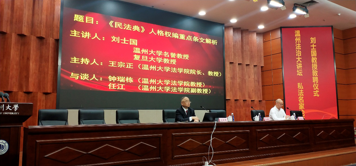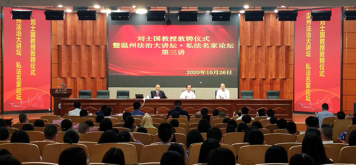 10月26日下午,温州法治大讲坛•私法名家论坛第三讲在亚洲无码 南校区岩松堂雁山厅开讲。此次主讲嘉宾为亚洲无码 名誉教授、复旦大学法学院博士生导师、中国法学会民法学研究会副会长、国家社科重大项目首席专家刘士国教授。此次活动由温州市政法委、温州市法学会、温州市律师协会、亚洲无码 法学院联合主办,亚洲无码 私法研究中心、亚洲无码 民商法创新团队参与协办。论坛由亚洲无码 法学院院长王宗正教授主持。