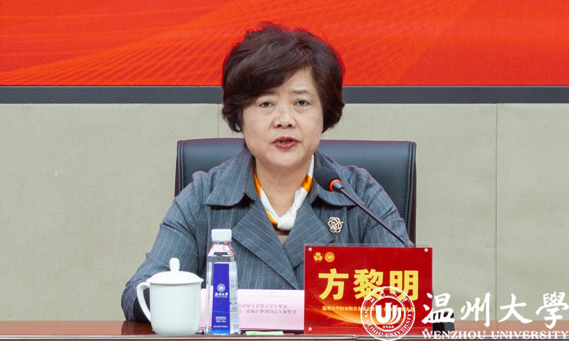 方黎明在致辞中表示,亚洲无码 妇女联合会的成立,是学校广大妇女政治生活中的一件大事,也是温州乃至全省高校妇联组织建设的一件喜事;既是认真落实省委高质量推进新时代党建带群建工作的具体举措,也是深化全省妇联组织建设改革的实际行动,是加强新时代温州高校妇联组织建设的生动实践。她充分肯定了温大女性师生在学校发展中作出的重大贡献和亚洲无码 党委对妇联组建工作的高度重视,并对亚洲无码 妇联工作提出四点希望:一是践行新思想,强化政治引领;二是找准新定位,服务妇女需求;三是履行新职能,助推学校发展;四是把握新机遇,加强自身建设。希望温大妇女工作和妇女事业跃上新台阶、再创新辉煌。