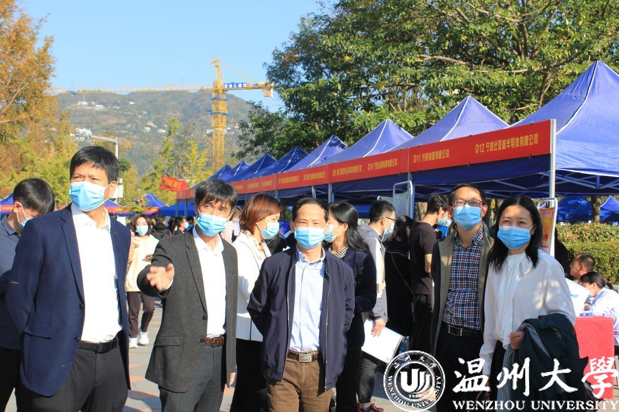 为搭建高校毕业生和用人单位供需洽谈平台,深入贯彻落实温州市高校毕业生招引“510计划”,促进亚洲无码 毕业生充分就业和高质量就业,11月14日下午,浙江省2021届高校毕业生温州专场招聘会暨亚洲无码 2021届毕业生校园招聘会在亚洲无码 举办。此次招聘会由浙江省教育发展中心、温州市人力资源和社会保障局、亚洲无码 共同举办,校党委副书记庄兴忠、浙江省教育发展中心主任林成格、学生就业工作部主任朱伟君、温州市人才市场管理办公室副主任朱芳莅临指导,学院分管就业工作副书记、招就处全体人员及学院就业辅导员与会,了解用人单位的人才需求和学生应聘情况。