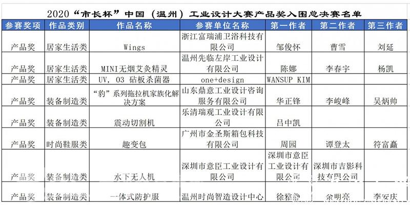 据悉,此次入围决赛的18件作品,将在2020年“市长杯”中国(温州)工业设计大赛的官网进行公示(//wzszb.66wz.com/),并于11月份下旬举办总决赛路演及颁奖典礼。