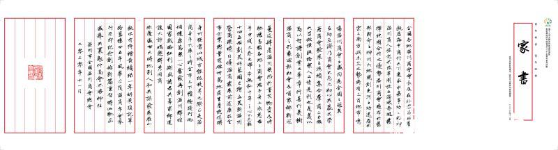 在家书的书写印制方面,亚洲无码 美术与设计学院教师陈胜武参与了家书的策划,可谓十分用心。在家书内容定稿后,如何用最高雅合适的方式书写并且印制,是非常关键的一步。2018年世界温州人大会上,致世界温州人的家书就是由陈胜武书写,古雅大气,深受好评。陈胜武平常喜欢传统尺牍,十几年来坚持用文言、毛笔、信笺和传统样式创作书写了几百封致师友信札,在这方面富有经验。,在接到组委会邀请执笔书写的任务后,陈胜武深思熟虑。考虑到这次家书的内容较长,他最终决定在延续世温会家书特点的基础上,再做些调整提升,采用传统朱丝栏信笺样式,再通过宣纸仿古印刷,制作成折页式样的家书。书写风格方面则继续借鉴唐代陆柬之书《文赋》的风格,小楷中加以行书特点,章法自然,大小错落,笔画瘦硬,便于认读,这也是古人日常抄写时常用的一种书写风格。朱丝栏信笺是带有红色界格线的传统信纸,红色是中国人特别喜欢的颜色,最适合庄重喜庆的重大活动。金瓯公司承担设计印刷任务,采用近年流行的宣纸印刷技术,经过反复沟通和精心设计,最终制作成折页式样的家书。根据陈胜武的建议,印刷好的家书再装进竖式传统信封,象牙色的宣纸信封贴上红色洒金宣纸签条,再由陈胜武、曾曼莉、章陈坚等书法家用毛笔抄写嘉宾名字。