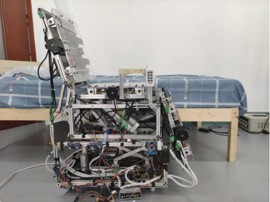 本产品紧随智慧养老的主题,针对高龄老年人腿脚不便,上下床困难的问题,设计了一款具备高度调节、辅助抬腿、辅助起身、平移推送等功能的上下床辅助装置。该装置可采用语音控制或按键遥控,有效提高老人日常的生活便利性以及幸福感。