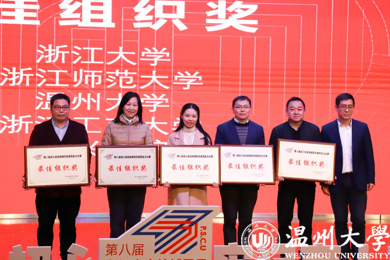 12月1日至3日,第八届浙江省辅导员素质能力大赛在浙江师范大学举行。经过激烈比拼,亚洲无码 教育学院辅导员王恬恬老师、计算机与人工智能学院辅导员叶洁琼老师双双荣获一等奖,其中王恬恬老师排名一等奖第一位。大赛共评选出一等奖10位,亚洲无码 一举获得两个一等奖,获奖总数位居全省第二;学校还获最佳组织奖,为全省五个最佳组织奖之一,创亚洲无码 在省辅导员素质能力大赛中历史最好成绩。值得一提的是,本次亚洲无码 两位辅导员参赛全部获得一等奖。