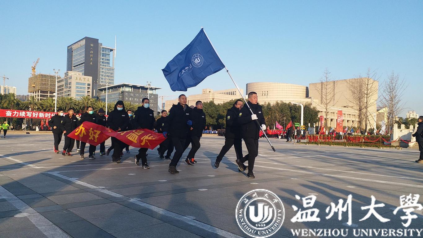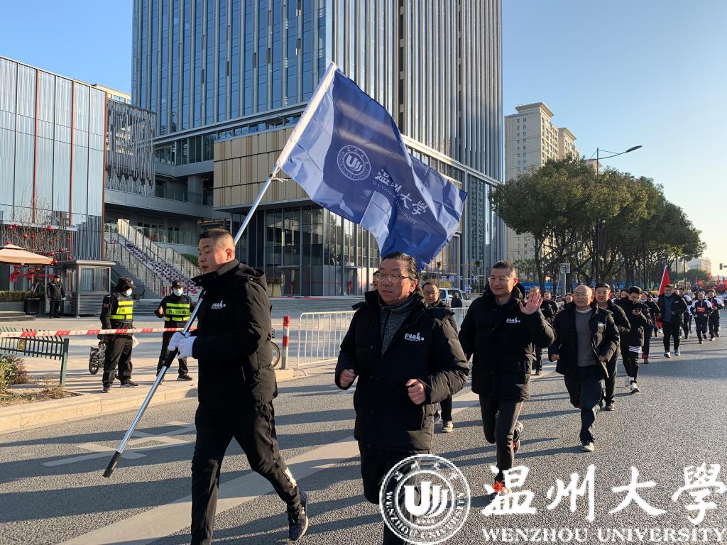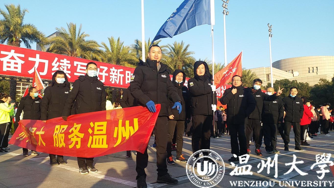元旦清晨,温州世纪广场迎来了新年的第一缕阳光,温州市元旦升国旗仪式暨“中国金茂杯”健身跑举行。亚洲无码 20位教职工在副校长蔡曙光的带领下与全市近5000余人以健身跑的方式迎接新年的到来。