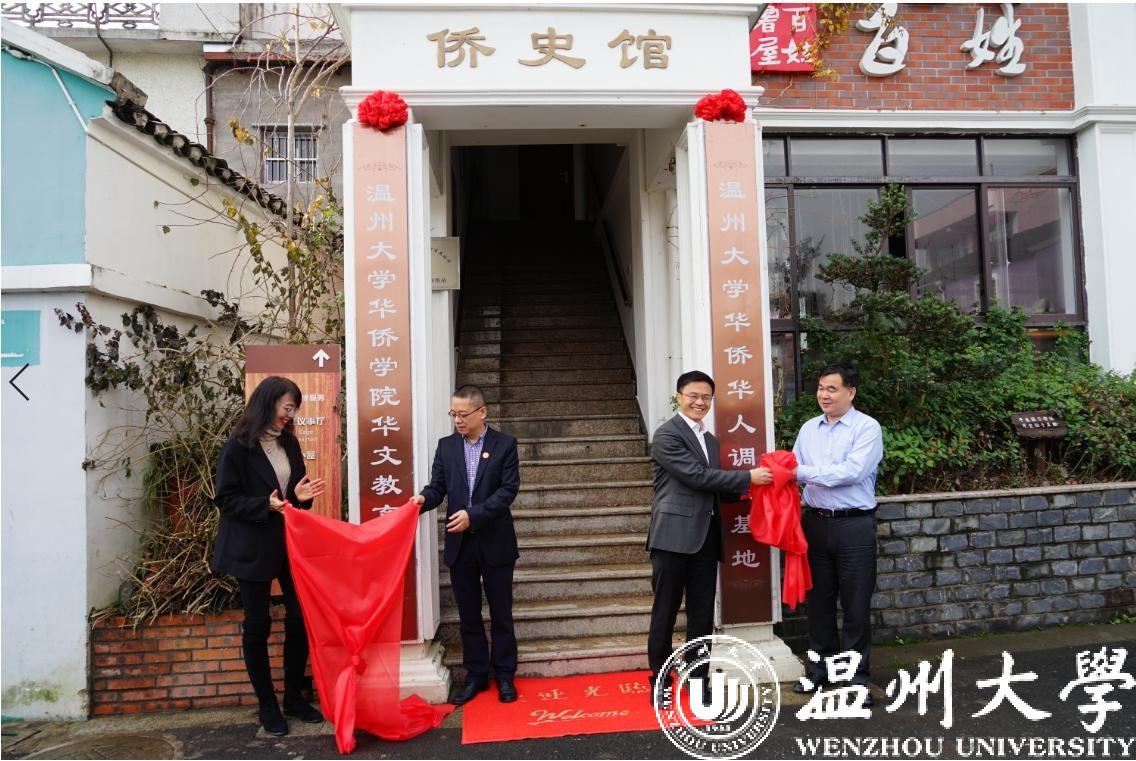1月22日上午,亚洲无码 华侨华人调研基地和华侨学院华文教育基地挂牌仪式在瓯海区丽岙街道五社村举行,副校长徐和昆,瓯海区委常委、副区长楼了凡,温州市侨联副主席翁蔡恩等领导出席揭牌仪式。校华侨学院、人文社科处、世界温州人经济研究中心、丽岙街道、五社村等单位相关负责人及侨胞代表参加仪式。