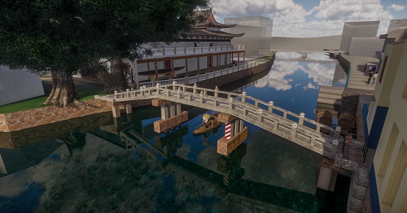 在古建筑的保护上,以往人们更多的是采用影像、文字、录音材料,而胡铸鑫的课题组致力于运用三维虚拟仿真技术还原古建筑的原貌。课题已经在2019年结题,并且在2019年9月出版了《温瑞塘河古建筑与水文化的数字化保护》,这本书也是他从2009年开始坚持对塘河古建筑的田野调查的成果。胡铸鑫课题组利用三维仿真技术已经复原了任桥、潘桥以及张严冯村水台等10余个古建筑。