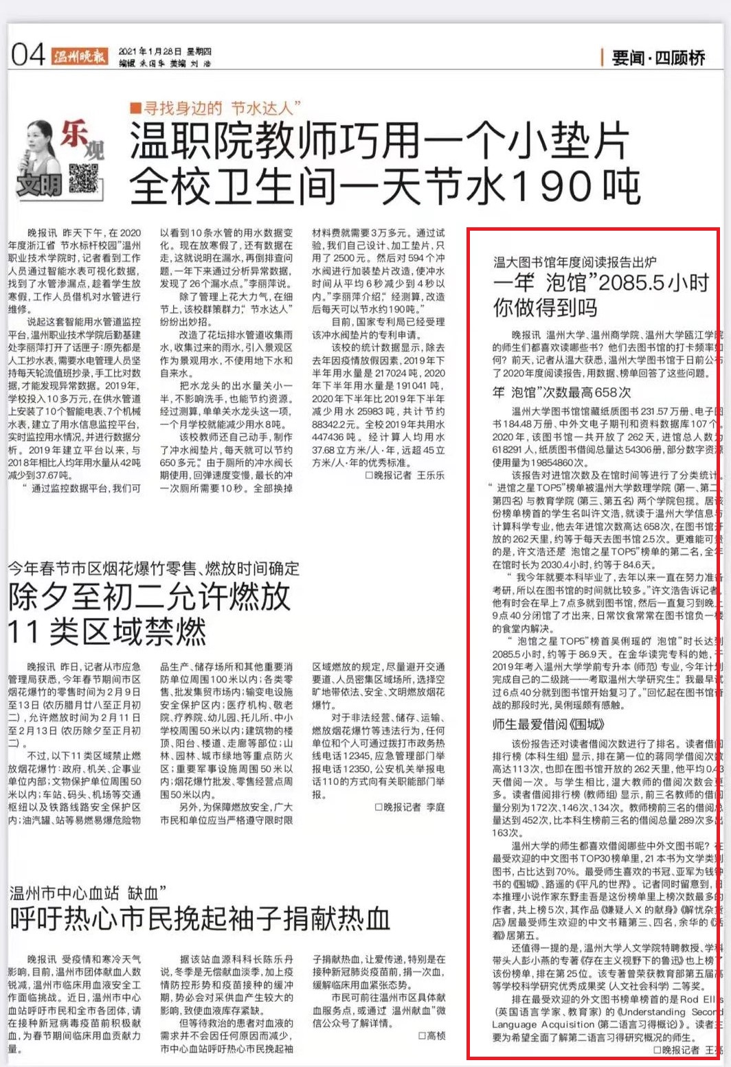 亚洲无码 的师生们都喜欢读哪些书?他们去图书馆的打卡频率如何?前天,记者从温大获悉,亚洲无码 图书馆于日前公布了2020年度阅读报告,用数据、榜单回答了这些问题。