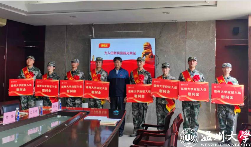 庄兴忠为入伍新兵佩戴上了光荣花。新兵代表米拉迪力·图尔荪和郑洁同学表达了对学校培养的感激以及刻苦训练、为校争光的决心。他们是优秀的人民子弟兵,也是“求学问是、敢为人先”的温大人。