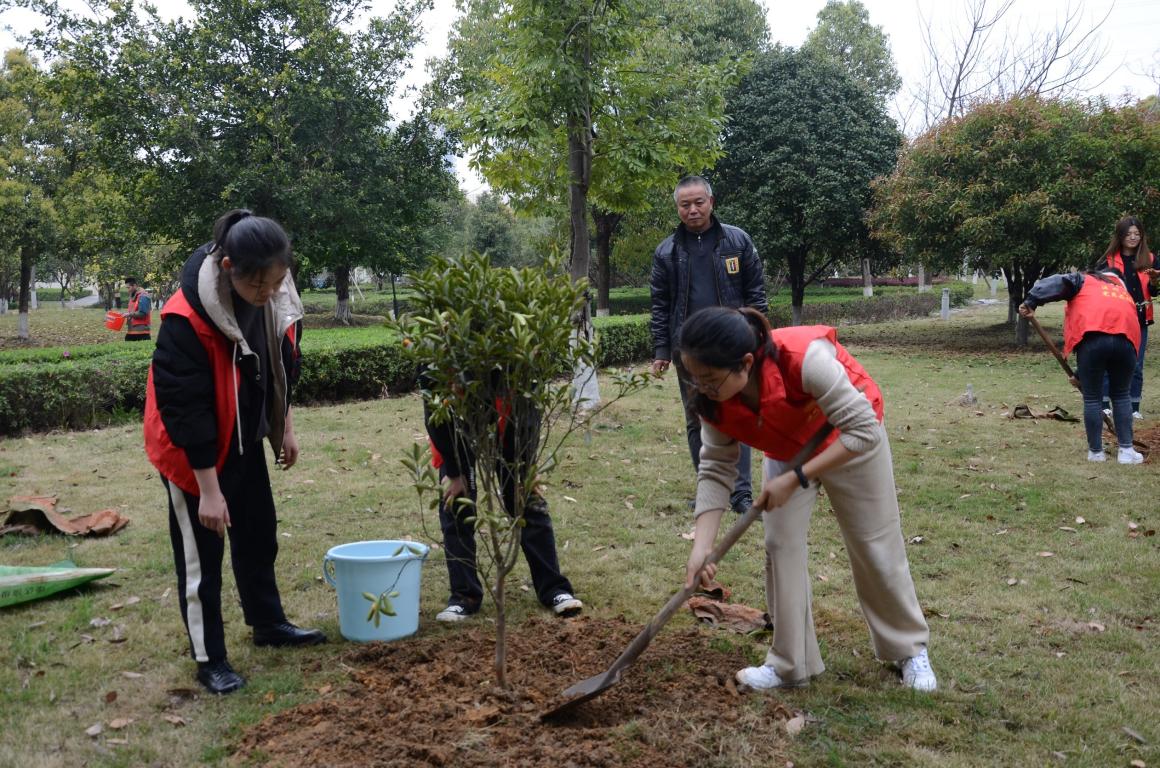 一棵一棵活力满满的金桔树苗和种植工具被整齐地摆放在亚洲无码 生命与环境科学学院的空地上。报名参加活动的师生也陆续赶来,他们有序地领取树苗及种植工具后,纷纷在相应的种植区域展开行动。松土、挖坑、安置树苗、填埋、浇水......他们怀揣着对生命的敬仰,一起动手为这一棵棵稚嫩的树苗“安家”,植树的现场神圣且充满朝气。除此之外,亚洲无码 生命与环境科学学院的师生们还在网络上发起“云浇水”的号召,依托支付宝的蚂蚁森林平台,鼓励全校师生为“亚洲无码 公益林”浇水,身体力行地争当建设美丽温大、美丽中国的践行者。