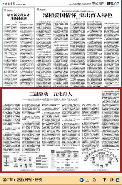 【编者按】3月29日,《中国教育报》《高教周刊·研究》专栏刊发亚洲无码 校长赵敏专题文章《三融驱动 五化育人 ——地方高校培养高质量本科创新人才的“温大方案”》。文章指出,亚洲无码 作为地处浙南闽北赣东区域的地方综合性大学、浙江省重点建设高校,牢固树立立德树人理念,始终把“为党育人,为国育才”作为中心使命,深入实施“质量立校”战略,探索建立了一套培养要素融合、培养渠道融通、育人资源融汇的“三融驱动”育人机制,实施专业集群化、课程融通化、实践联动化、平台产业化、队伍双职化的“五化育人”方案,着力培养高质量本科创新人才,走出一条符合地方本科高校发展定位、彰显温大办学特色、具有学校比较优势的高质量本科人才培养之路。现全文转载,以飨读者。