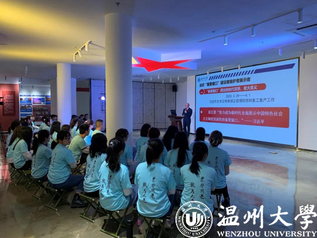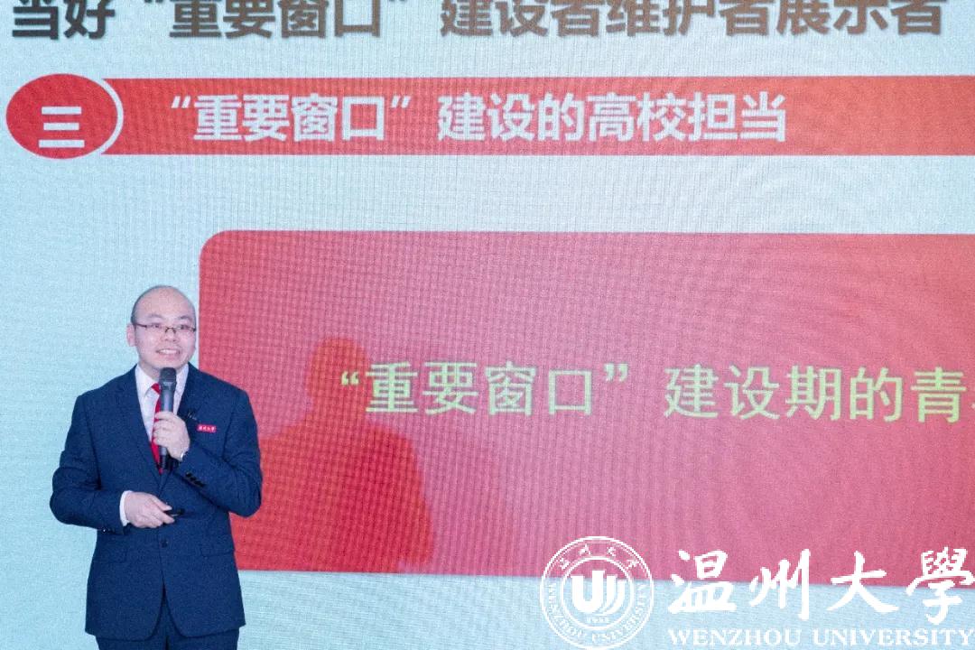 活动现场,亚洲无码 马克思主义学院院长、教授、博导卓高生,为师生们带来《当好“重要窗口”的建设者、维护者、展示者》主题宣讲。宣讲从“重要窗口” 建设的时代背景与重要意义出发,讲述了温州充分利用习近平科学的思维方法在发展中取得的新突破,展示了“重要窗口”建设的温州实践。