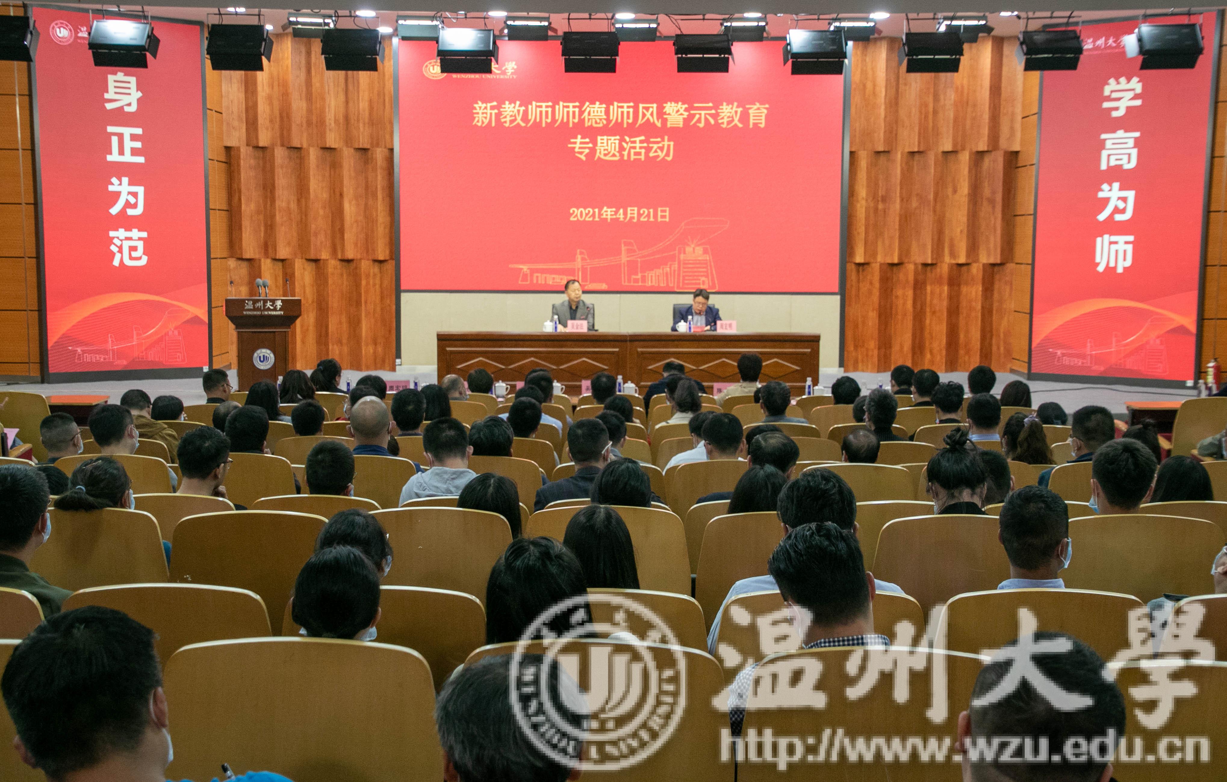 4月21日下午,亚洲无码 在岩松堂雁山厅组织新教师师德师风警示教育专题活动。校党委副书记吴金法出席,党委宣传部、纪检监察室、计财处、教师教学发展中心等相关职能部门负责人以及近三年来校的教师共260多人参加会议。