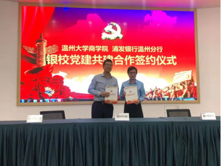 为拓宽银校党建协作共赢的有效途径,近日,商学院与浦发银行温州分行签订“学党史,办实事”银校党建共建合作协议。双方明确今后将在长效机制建设、党史学习教育、学生实习就业等多个方面加强沟通协作,资源共享、优势互补、共建提升,推动银校双方党史学习教育进一步走深走实,带动党建业务进一步融合发展。双方表示,将合作打造真正促进银校共赢的党建品牌,在党建共建的引领下,把双方共建互促的政治优势转化为发展优势,转化为双方服务温州经济社会发展、服务广大群众的强大动力,以实际行动向建党一百周年献礼。商学院院长胡振华教授开启金融党课第一讲,并强调作为商科学院和金融行业的基层党组织,要在学习实践中努力学习和弘扬实事求是、与时俱进等党的优良作风。
