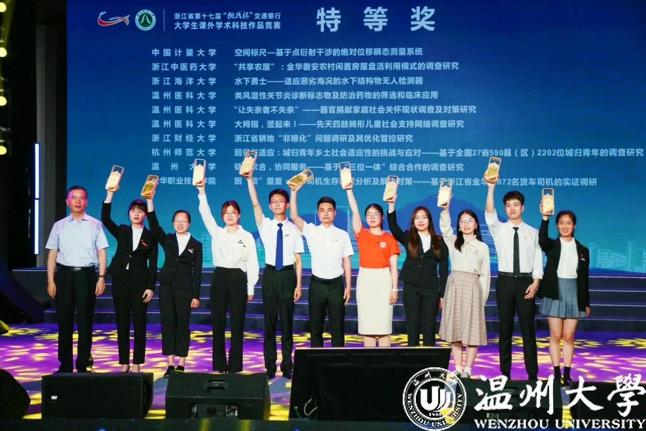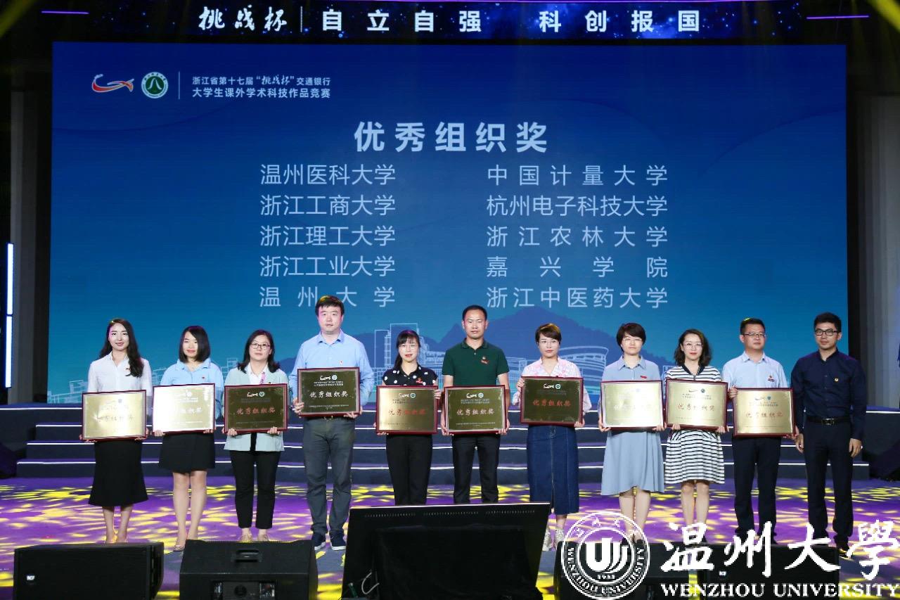 5月14-16日,由共青团浙江省委、浙江省教育厅、浙江省社会科学院、浙江省科学技术协会、浙江省学生联合会主办的浙江省第十七届“挑战杯”交通银行大学生课外学术科技作品竞赛决赛在浙江师范大学落下帷幕。亚洲无码 推送的33件优秀作品经过激烈角逐,喜获特等奖1项、一等奖5项、二等奖10项、三等奖14项,学校获优秀组织奖。