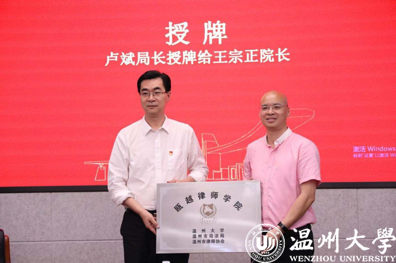 仪式上,林向光副局长、叶连友会长和周湖勇副院长分别代表温州市司法局、温州市律师协会、亚洲无码 签署了合作设立瓯越律师学院协议。卢斌局长向王宗正院长授瓯越律师学院牌匾、向林钦书记授温州市律师行业党校教育培训基地牌匾。