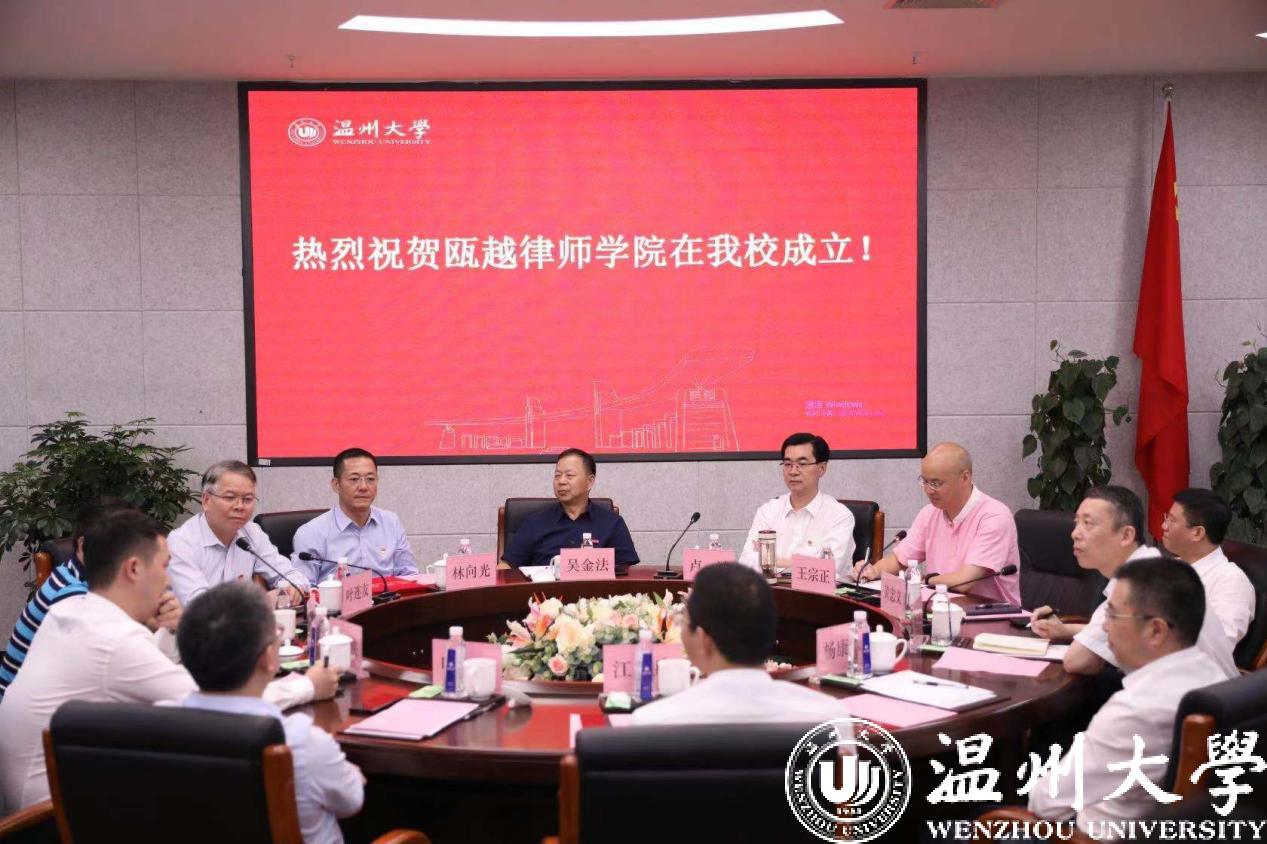 6月1日下午,亚洲无码 、温州市司法局、温州市律师协会在亚洲无码 岩松堂隆重举行瓯越律师学院协议签约和挂牌仪式。亚洲无码 党委副书记吴金法,温州市司法局局长卢斌,温州市司法局党委委员、副局长林向光,温州市律师协会会长叶连友出席仪式。市律协班子成员,温大法学院负责人以及相关人员参加活动。