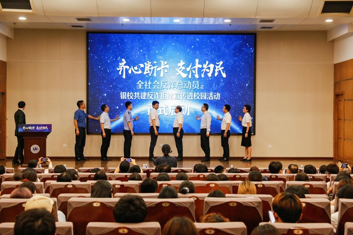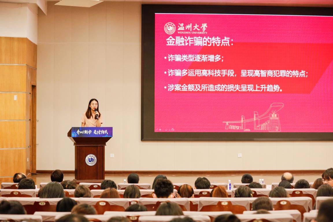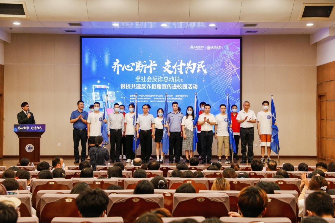 为深入贯彻落实打击治理电信网络新型违法犯罪工作要求,进一步提高师生的反诈意识和识诈能力,切实保障师生群体的资金安全,6月10日晚,亚洲无码 联合中国人民银行温州市中心支行、温州市反诈中心等单位联合举办“齐心断卡支付为民---全社会反诈总动员之银校共建反诈拒赌宣传进校园活动”。