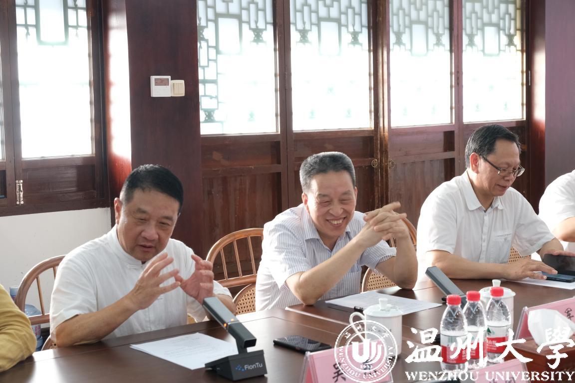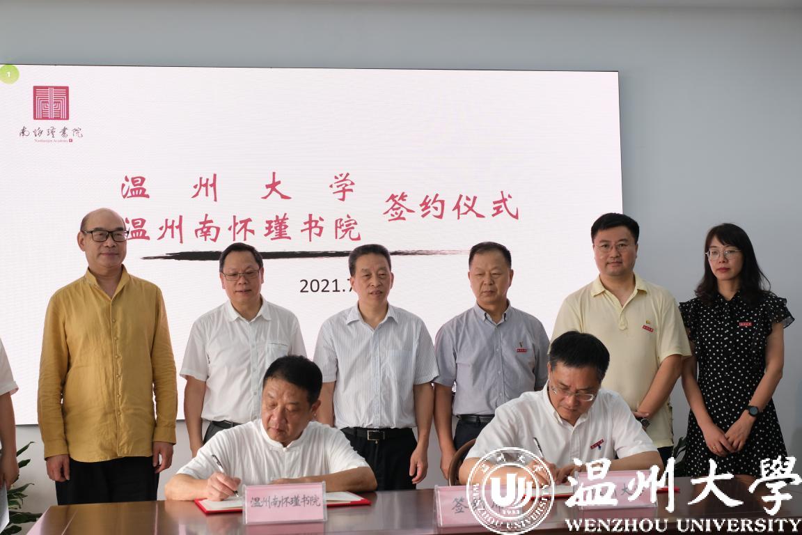 7月8日下午,亚洲无码 与温州南怀瑾书院“战略合作”签约授牌仪式暨党外人士实践教育活动举行。市委统战部副部长叶军、海外联络处处长蔡姬辉、海外联络处副处长杨知佳,温州南怀瑾人文公益基金会理事长陈建克、南怀瑾书院执行院长吴东、院务长柯小敏,校党委副书记吴金法出席会议,统战部、人文学院、华侨学院及民主党派、统战团体相关负责人等出席活动。