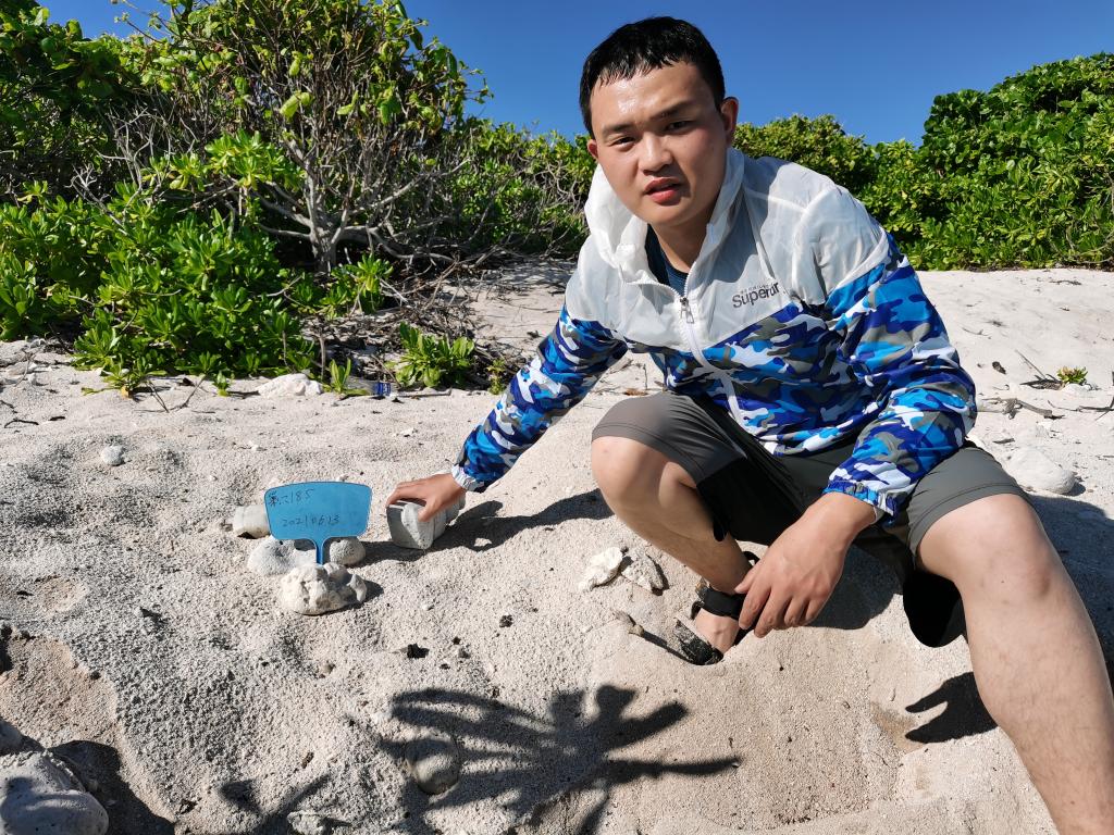 扎根南海,开启科研之路。研一时,赵鸿运就开始了实验室、寝室、图书馆三点一线的苦行僧式生活。在阅读各类文献后,他了解到由于海洋生态环境的恶化以及产卵栖地的破坏,绿海龟的数量已极其稀少。因此,保护绿海龟已经到了刻不容缓的地步。为了为我国南海珍稀动物保护事业贡献自己的一份力量,赵鸿运在计翔教授的建议和指导下,决定将绿海龟作为自己硕士学位论文的研究对象,在西沙甘泉岛上开启历时1年的探索之旅。“研究绿海龟的生活习性,能更好地保护这一稀有物种,这对于维持海洋生态平衡和维护物种多样性具有十分重要的意义,毕竟我们谁也不愿意看到这一美丽的物种从地球上消失”。赵鸿运出发前如是说道。