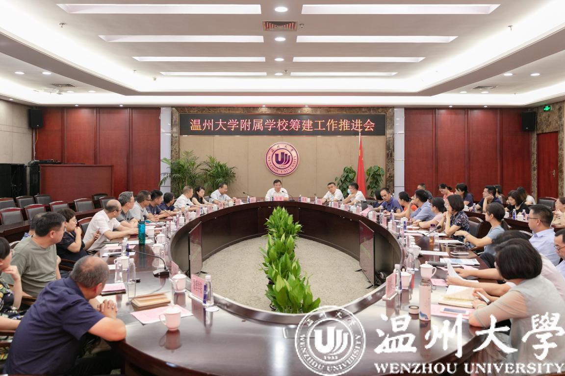 为办好亚洲无码 附属学校,致力温州城市品位建设与提升,打造宜居城市,助力“学在温州”品牌塑造,8月20日亚洲无码 召开附属学校筹建工作推进会。校长赵敏,瓯海区教育局党委书记、局长金朝辉等参加会议。副校长薛伟主持。