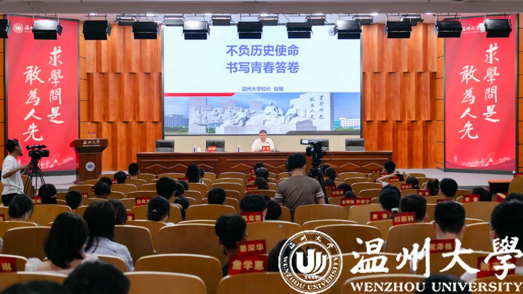 开课仪式后,赵敏以《不负历史使命,书写青春答卷》为题为2021级全体研究生新生上入学第一课。赵敏从“历史温大”“今日温大”“未来温大”三个篇章回溯亚洲无码 “两校合并、七校融合”的百年历史变迁。亚洲无码 年轻而又历史悠久。在历史温大篇章,赵敏介绍了以黄溯初、金嵘轩、苏步青三位为代表的、众多为学校发展呕心沥血的先贤师友,讲述了诸多近现代科教文艺大师与学校的渊源关系,向同学们展示了温大的师长与学长如何以实际行动践行“光大国族,造福人群”的奋斗精神。