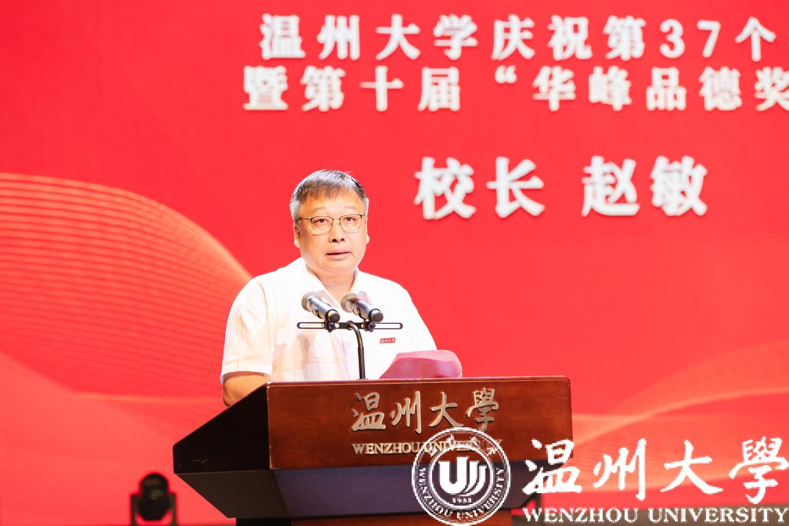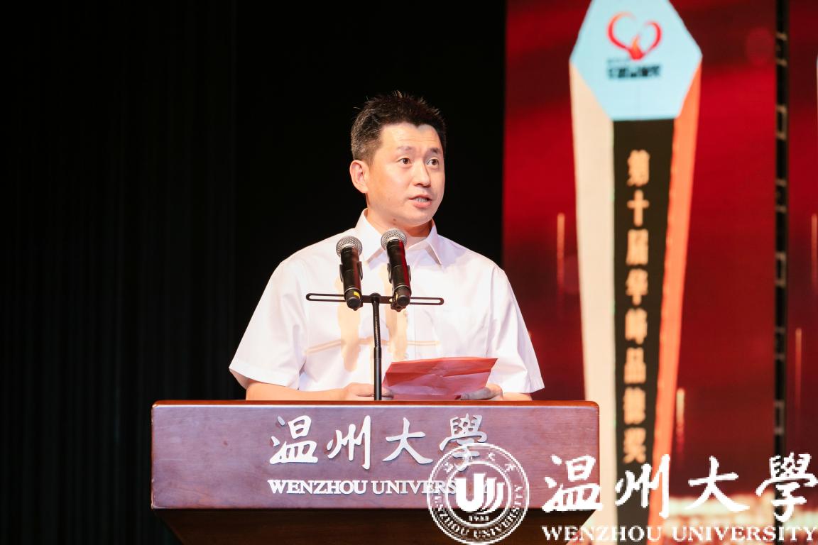 校长赵敏致辞。他代表学校向辛勤耕耘无私奉献的全校教职员工致以节日的问候,向获得第十届“华峰品德奖”的个人和集体表示祝贺。他指出,亚洲无码 始终坚持立德树人、坚守教育初心,建设了一支有理想信念、有道德情操、有扎实学识、有仁爱之心的“四有”教师队伍,生动诠释了人民教师光荣而神圣的职责和使命。在华峰集团的支持下,近十年来学校还评选表彰了一批思想品德表现突出的师生个人和团体,他们在推动学校发展、建设和谐校园、服务广大师生中作出了重要贡献。他强调,亚洲无码 正处于转型发展的重要阶段,希望全体师生共同学习榜样的先进事迹精神,立足本职、扎实工作、积极作为,以崇高思想引领社会风尚,以实际行动推进学校发展,在建设“重要窗口”中发出温大师生的时代强音。