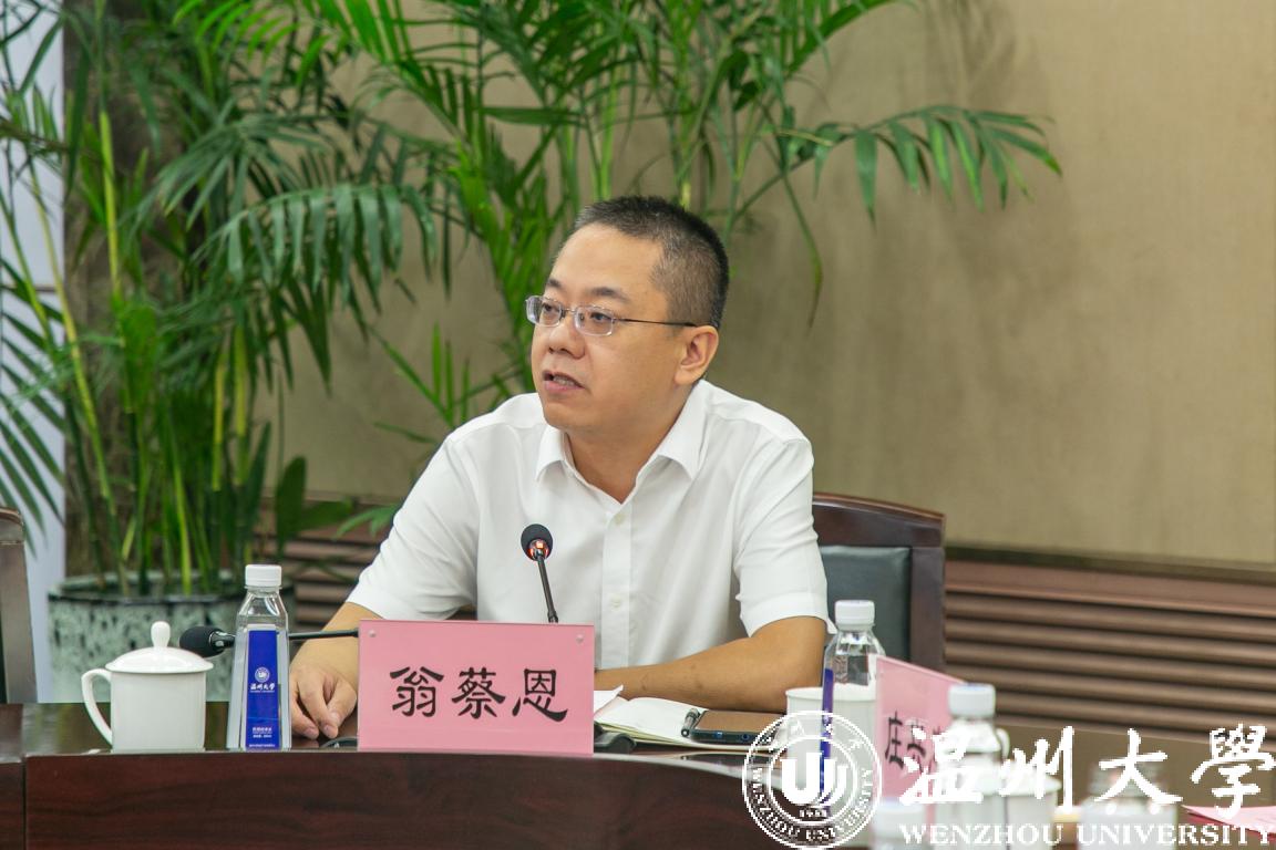 在参会人员的共同见证下,温大学工部负责人与翁蔡恩共同签署捐赠协议,庄兴忠代表学校接受捐赠支票并向翁蔡恩颁发感谢状。