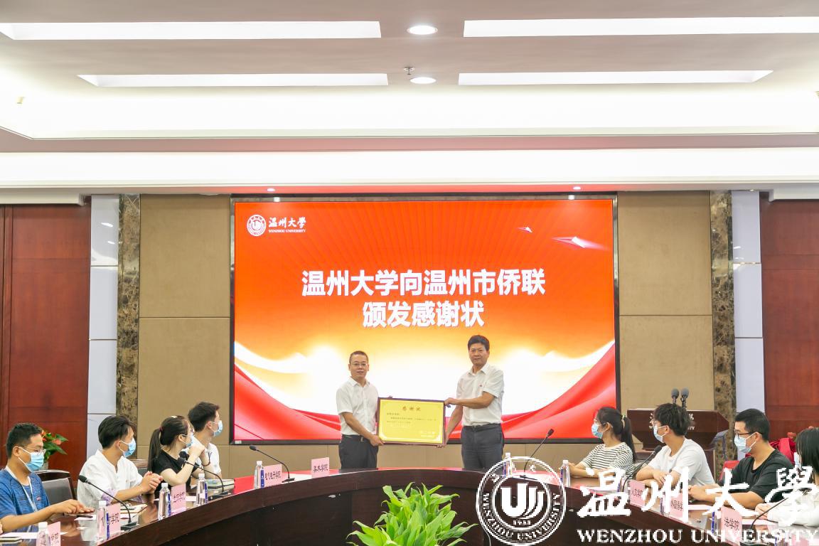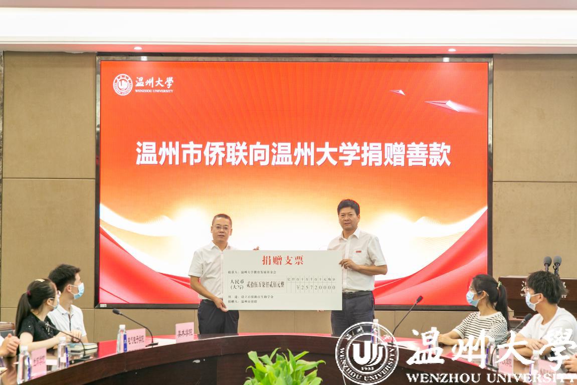 9月24日上午,2021年亚洲无码 —温州市侨联百侨助百生”捐赠仪式在亚洲无码 举行。校党委副书记庄兴忠、温州市侨联副主席翁蔡恩出席会议。