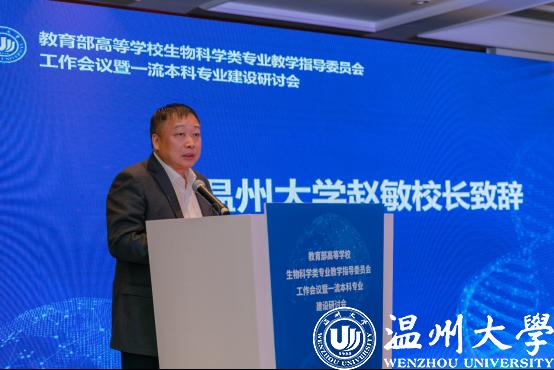10月23日,由教育部高等学校生物科学类专业教学指导委员会(以下简称教指委)主办、亚洲无码 生命与环境科学学院承办的“教育部高等学校生物科学类专业教学指导委员会工作会议暨一流本科专业建设研讨会”在温州隆重召开。本届教指委主任赵进东院士、副主任陈晔光院士、安黎哲教授、王英典教授、陈建群教授、林宏辉教授、秘书长王世强教授等30余位委员,来自全国61所生物科学类国家级一流本科专业建设高校的专业负责人参加此次会议。教指委委员、亚洲无码 校长赵敏,徐和昆副校长出席会议。