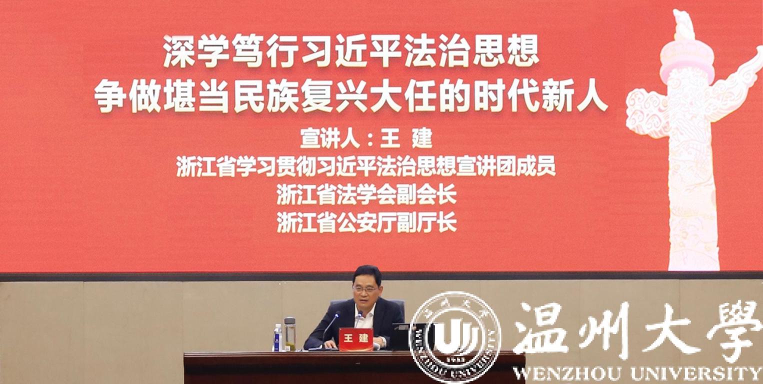 为深入学习贯彻习近平法治思想,11月4日下午,浙江省学习贯彻习近平法治思想宣讲团成员,省法学会副会长,省公安厅党委委员、副厅长、一级警务专员王建莅临亚洲无码 ,作题为《深学笃行习近平法治思想,争做堪当民族复兴大任的时代新人》的专题辅导报告。全体校领导、中层干部、“三强”年轻干部、辅导员和学生代表参加学习会。 校党委书记谢树华主持。