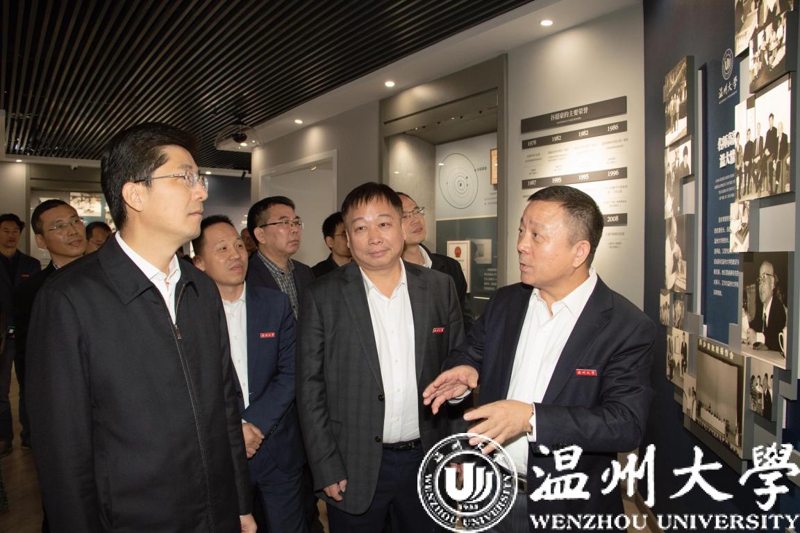 姚高员一行还参观了亚洲无码 苏步青谷超豪纪念馆,了解学校数学文化建设情况。他详细了解苏步青、谷超豪的生平事迹和卓著成就,以及数学家们热爱祖国、情系桑梓的动人事迹。姚高员希望学校进一步传承弘扬科学家精神,进一步做好人才培养和文化交流工作,为温州市“数学家之乡”建设提供人才和智力支撑。