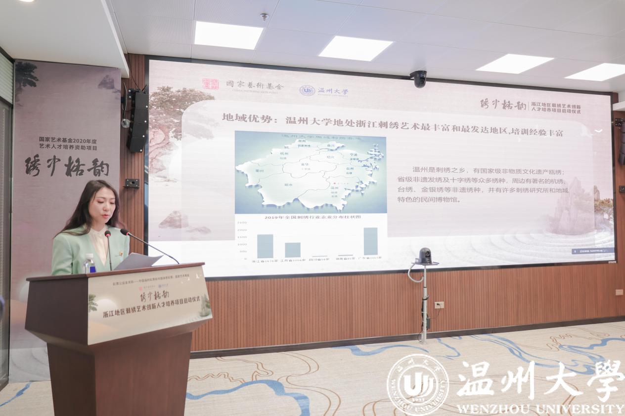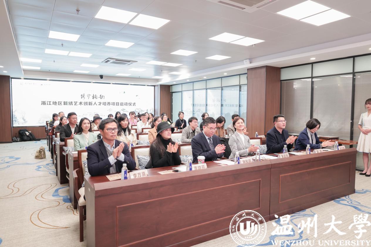 11月22日,由国家艺术基金资助,亚洲无码 承办的“浙江地区刺绣艺术创新人才培养”项目在亚洲无码 启动。温州市文化广电旅游局局长朱云华、副局长李方喜,副校长徐和昆,发绣研究所所长、中国非遗保护协会刺绣专业委员会秘书长孟永国,浙江理工大学国际时装技术学院院长季晓芬和来自江苏、上海、浙江、北京的学员参加培训。
