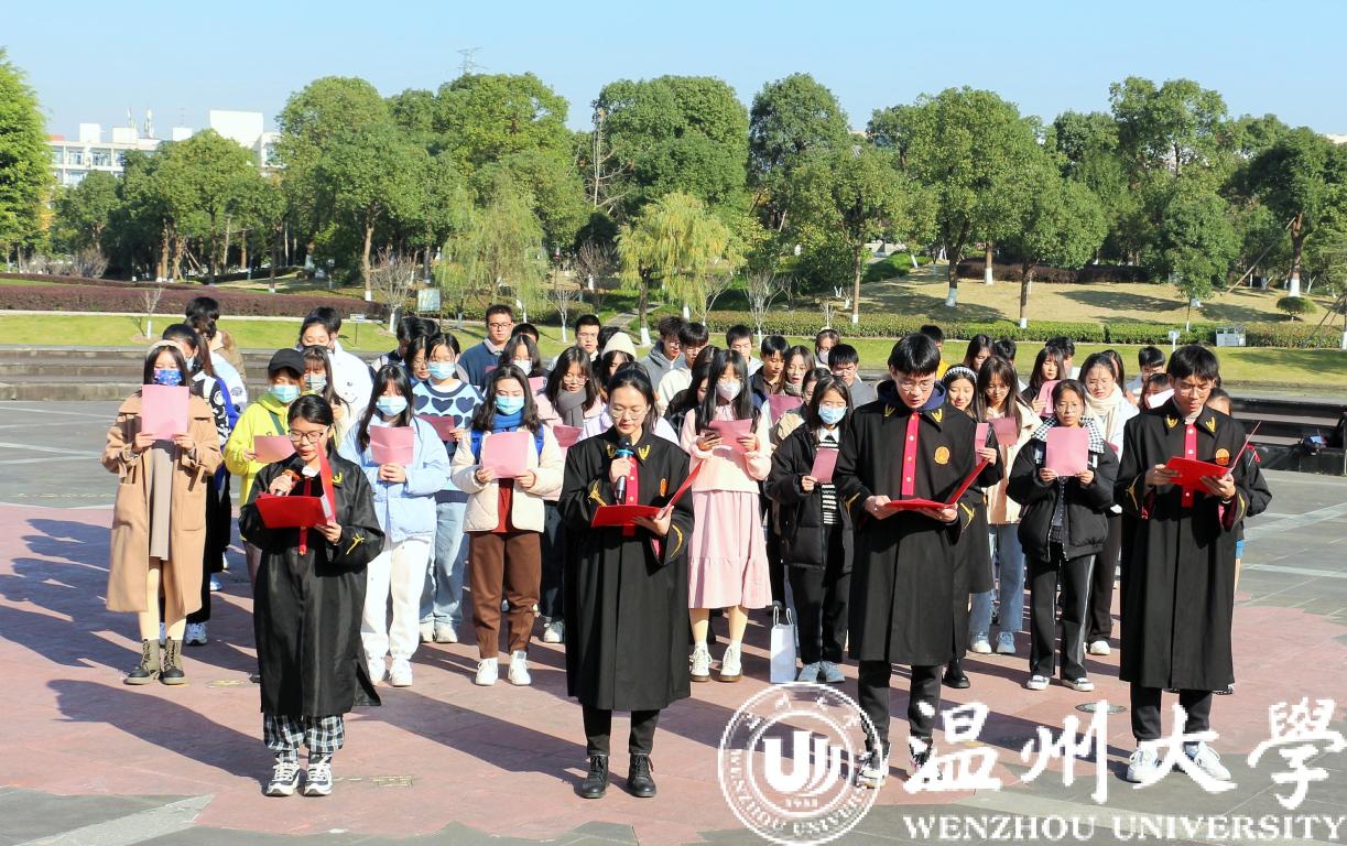 “中华人民共和国公民在法律面前一律平等。国家尊重和保障人权……”12月4日晨,青年学子齐聚亚洲无码 国旗广场晨读晓法,感悟国家根本大法的至高权威与光荣历史。随后,法学院王楦同作国旗下演讲《学宪懂宪我先行,遵宪维宪我践行》,他表示,作为一名青年学生,要认真学习宣传习近平法治思想,大力弘扬宪法精神,切实增强法治观念,让宪法精神真正成为青春旅途的指航明灯。