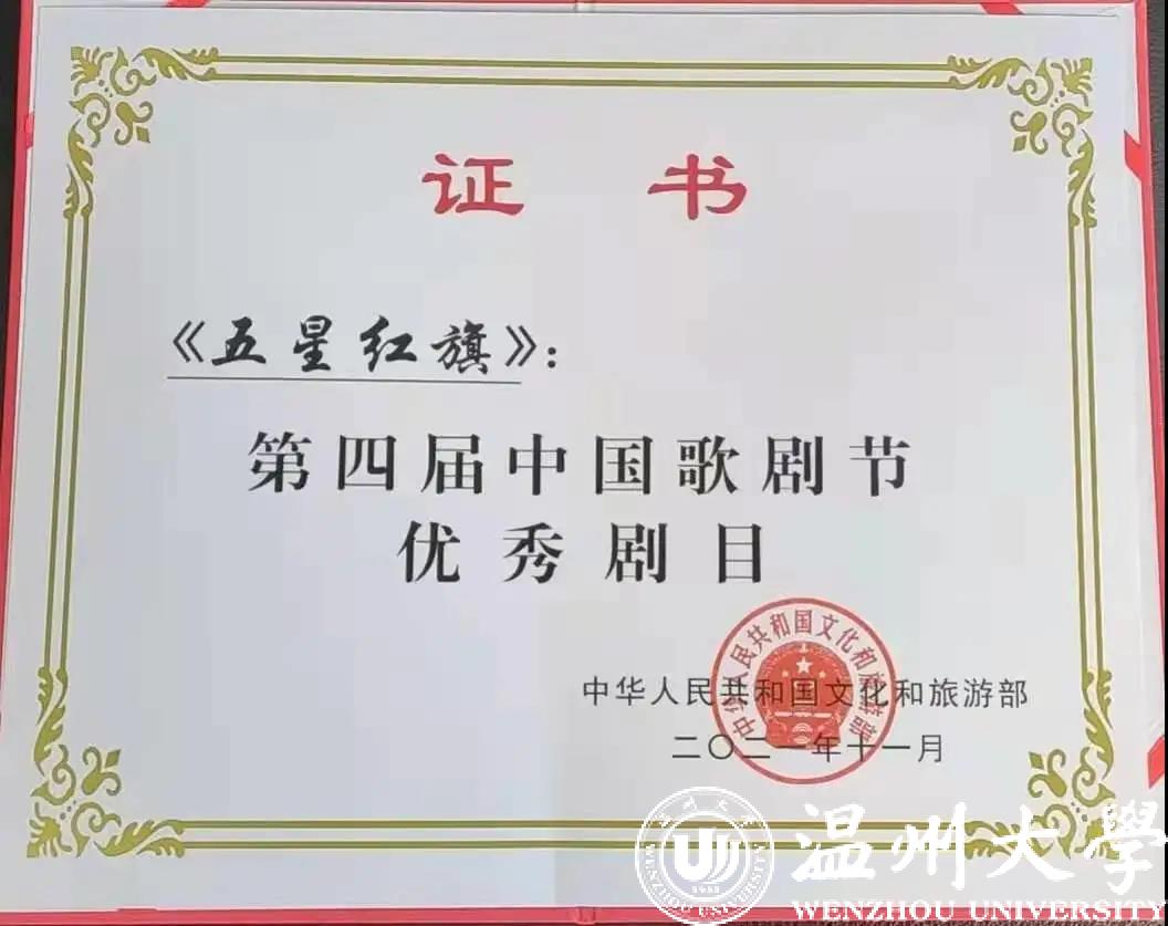 日前,喜讯传来,由中共温州市委宣传部、亚洲无码 和中共瑞安市委联合出品的原创歌剧《五星红旗》荣获第四届中国歌剧节优秀剧目奖。