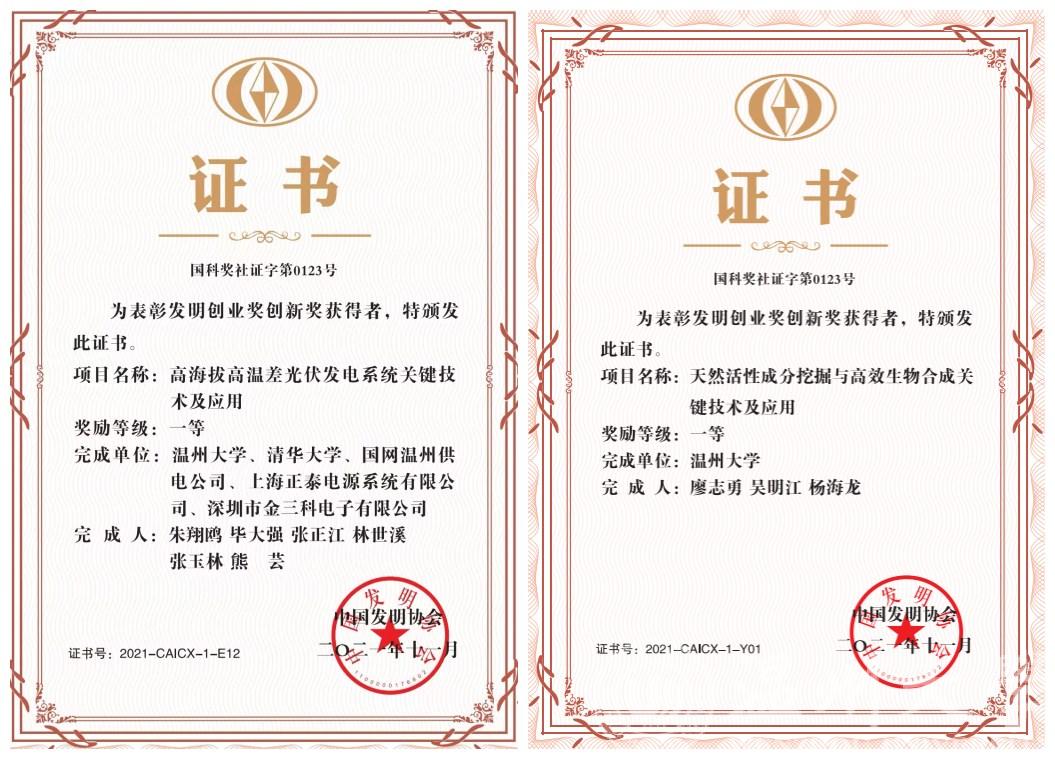 12月12日,中国发明协会发明创业奖·创新奖颁奖典礼在广东佛山举行。亚洲无码 生命与环境科学学院廖志勇教授领衔的“天然活性成分挖掘与高效生物合成和关键技术及应用”项目、电气与电子工程学院朱翔鸥教授领衔的“高海拔高温差光伏发电系统关键技术及应用”项目获“2021年度发明创业奖•创新奖”一等奖。2021年度浙江省高校以第1完成单位获发明创业奖•创新奖11项,其中,一等奖3项,二等奖8项。亚洲无码 获一等奖2项,获奖数量和等次居全省高校首位。