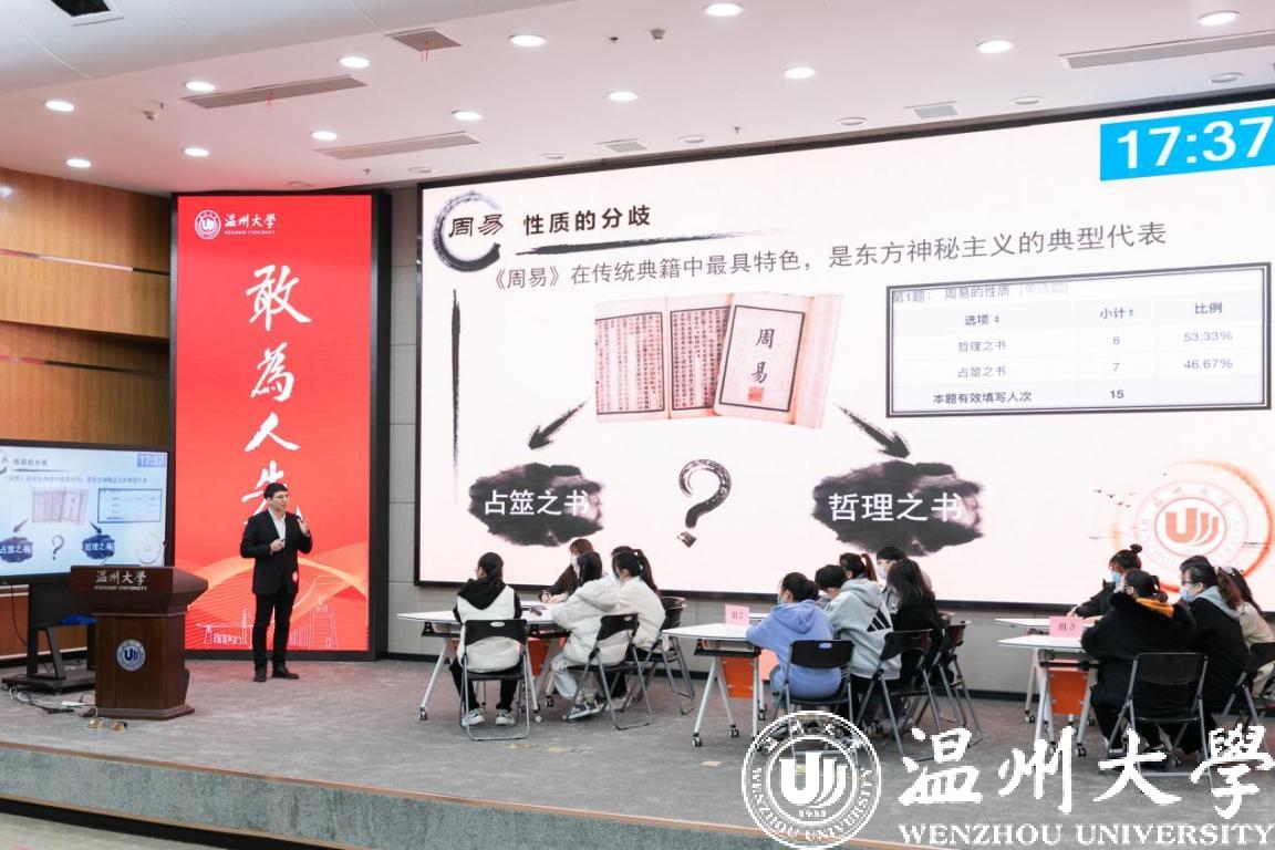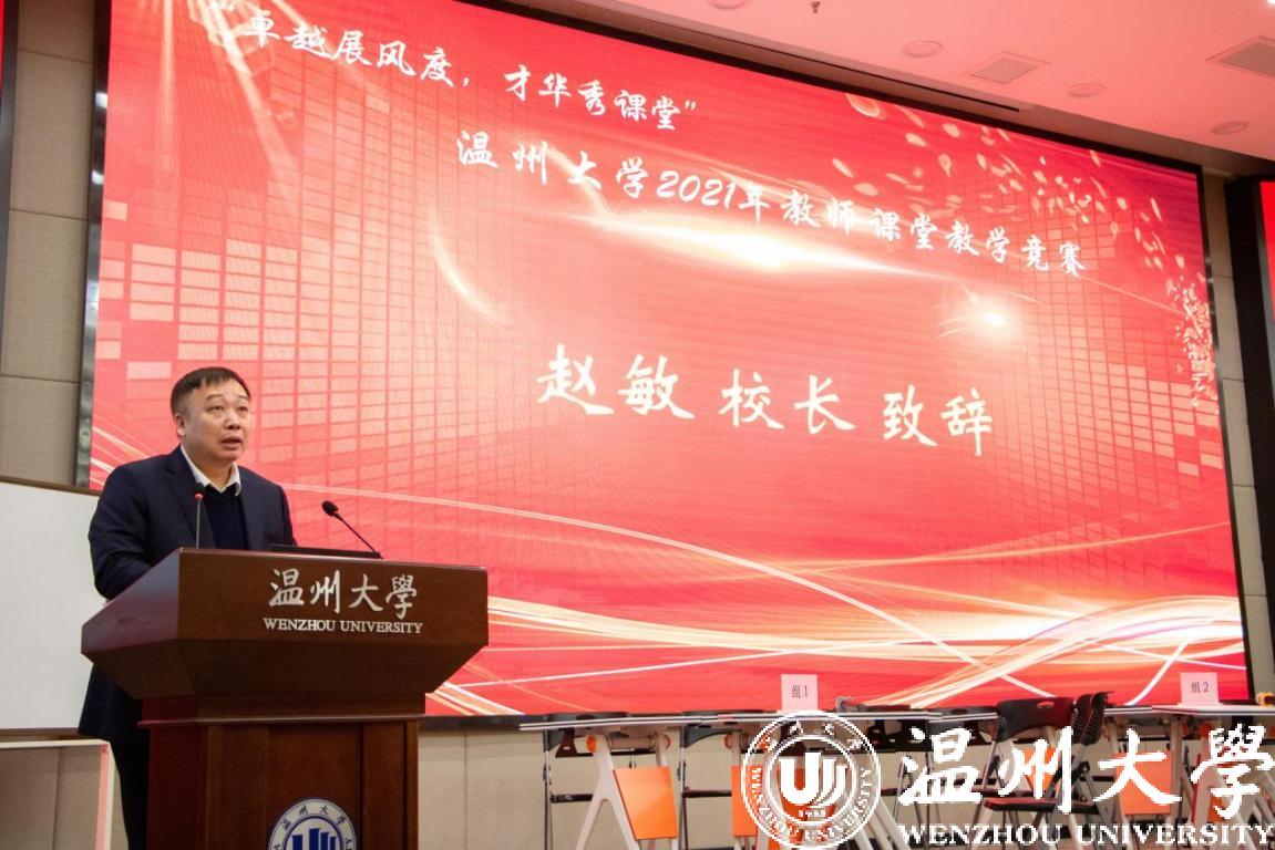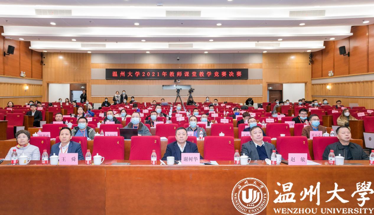 12月25日,亚洲无码 第三届教师课堂教学竞赛决赛举行。校党委书记谢树华、校长赵敏、党委副书记吴金法、副校长王舜等出席。浙江省高等教育评价研究院执行院长、浙江工商大学施建祥教授,温州医科大学教师教学发展中心王朝杰主任及校内外专家合计20名担任评委。本次比赛采用线下比赛加线上观摩方式进行,实行全程网络直播,国内许多高校广大教师通过直播观摩学习。据统计,全网观看直播17000多人次。