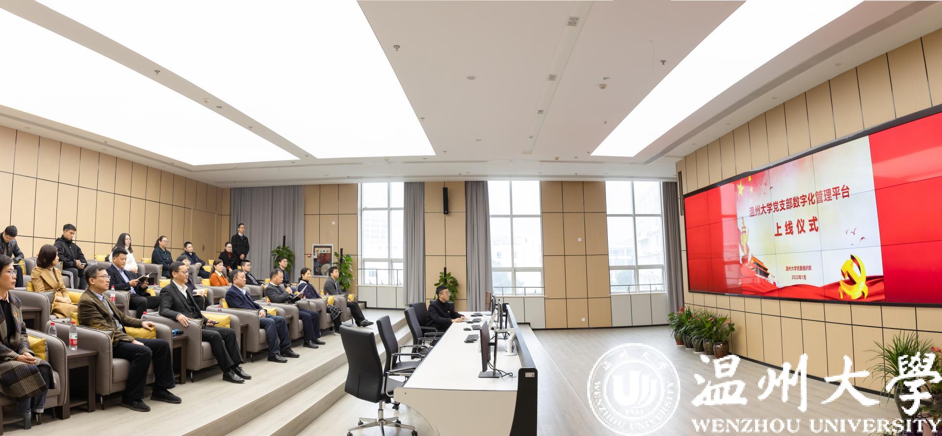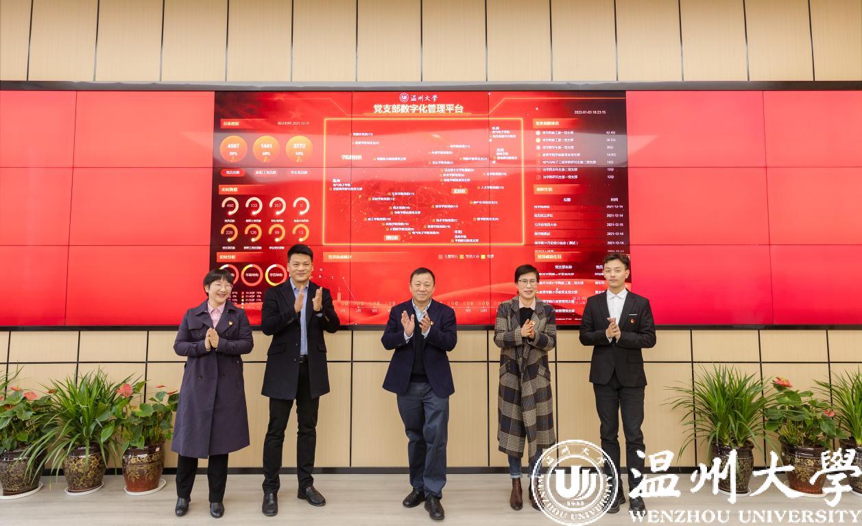校党委书记谢树华、党支部数字化管理平台试点单位负责人、师生党支部书记代表共同为平台上线揭幕。郑信军向出席领导和嘉宾介绍党支部数字化管理平台概况。该平台是亚洲无码 自主研发、拥有独立版权的智慧党建系统,拥有电脑端管理系统和手机端用户APP两种模式,采用学校党委、二级党组织、党支部、党员四级管理体制。平台以“堡垒指数”为核心,设置“大数据仓”“数以智用”“组织生活”“作用发挥”“积分管理”等10大主模块、30大子模块的具体应用场景。平台启用后,全校党支部和师生党员将全部纳入数字化管理系统,提供党支部智慧化管理、大数据研判、考评大擂台等数十项线上特色服务,具备党支部建设数据自动生成、实时抓取、整合输出等功能,构建的多维比较、互学互促的党支部活力激发机制,将有利于解决党支部建设过程中理念滞后、手段单一、效能低下等问题,也为精准、客观、科学评价党支部提供有力支撑。平台端口嵌入“我的温大”APP,可全面接入学校数据中枢,打通“数据孤岛”,实现数据互联互通互享。党支部数字化管理平台是亚洲无码 应用整体智治理念和系统观念方法,推动组织工作数字化改革,破解基层党支部管理痛点、堵点、难点的创新成果,为推动基层党建数字赋能作出引领示范。