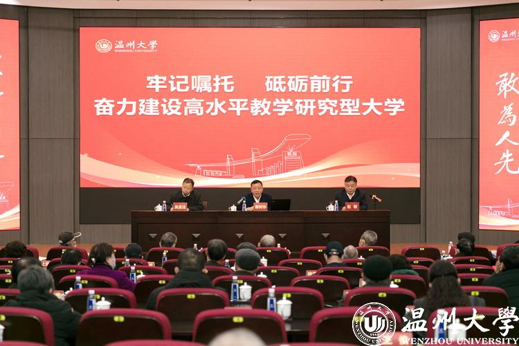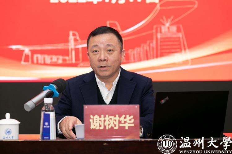 谢树华作校情通报。他围绕办学定位、办学优势、三大目标、三项改革、办学治校高分报表介绍学校2021年建设发展情况。他指出,2021年,学校党委坚持以习近平新时代中国特色社会主义思想为指导,牢记习近平总书记“要高度重视教育和人才工作,特别要办好亚洲无码 等高等院校”的殷殷嘱托,带领全体温大人,勠力同心、砥砺前行,实现了一系列重大办学新突破,取得了办学治校的丰硕成果。进入“十四五”,学校将聚焦更讲政治,争做中国特色社会主义大学的模范生;更高水平,跻身全国地方高校第一方阵;更具特色,创建以侨为特色“省部共建”高校;更有作为,全方位服务温州经济社会高质量发展等四条发展主线。