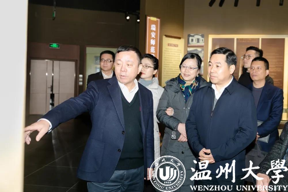 在谢树华陪同下,马永信一行参观了亚洲无码 校史馆、温州市发绣研究所等。谢树华详细介绍了亚洲无码 近90年的发展历程、为温州经济社会发展作出的重大贡献,特别是近年来学校发展的三大目标,实施的三项改革,交出的三张高分报表等。他还对九三学社亚洲无码 基层委的工作给以高度评价,并提出了希望和要求。
