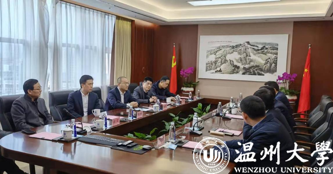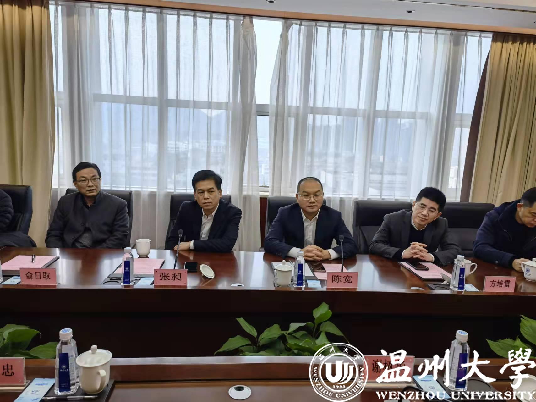 2月27日上午,温州市副市长陈宽一行莅临亚洲无码 调研指导,市政府副秘书长方培雷、瓯海区副区长张昶等陪同调研。校党委书记谢树华、党委副书记庄兴忠、副校长王舜等出席调研座谈会。