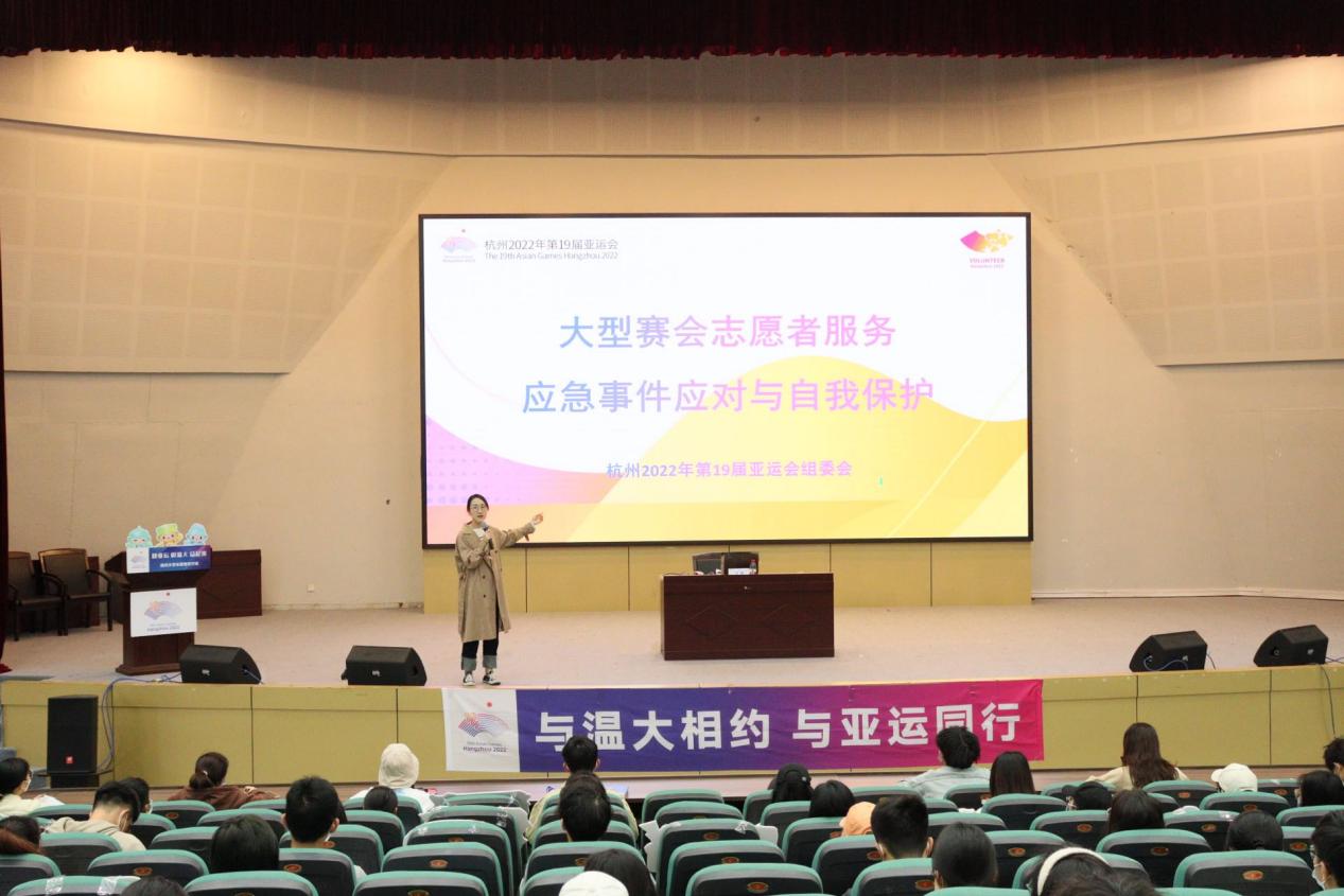 在《志愿服务应对紧急事件及自我保护》专题培训中,亚洲无码 团委副书记、亚运会志愿者培训师徐瑶通过结合具体志愿服务情景,详细讲解了大型赛会志愿服务应急事件的分类及对应原则,强调志愿者应注重自我保护,关注“四个安全”。针对常见及重大志愿服务应急事件,提出切实可行的处理方式和预防措施,为在场志愿者积累了应急经验。