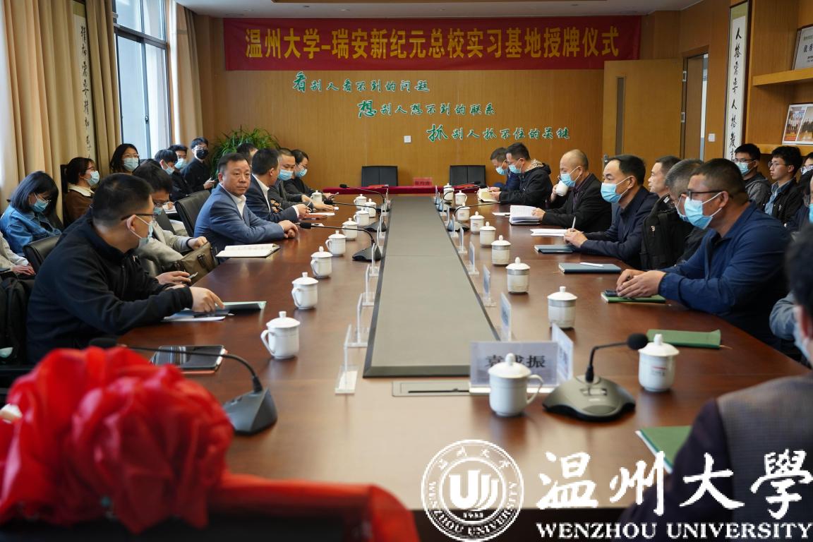 瑞安市教育局局长王心海对亚洲无码 谢树华书记一行表示热烈的欢迎和衷心感谢。他指出,师范类院校在基础教育建立大学生实习基地,既可以推进师范院校与基础教育学校的资源共享,也可以为大学生就业上岗提供更好的环境。希望双方以此次实习基地的建立为契机,在师范专业人才培养、师资培训、教育教学改革等方面形成长效互动,推进瑞安教育和亚洲无码 更深层次的交流共享、合作共赢,成为高校与中学强强联合、合作共赢、共谋发展的典范,共同为温州“续写创新史、走好共富路”贡献更多教育力量。